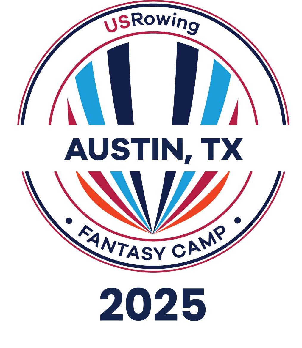 The USRowing Event logo for the 2025 rowing fantasy camp is designed to feature sleek, dynamic lines that evoke the motion of rowing, the logo integrates elements of water and oars in a modern, streamlined design. The color palette matches the colors used in the original logo. This logo symbolizes the camp’s commitment to providing an immersive, unforgettable experience of the fantasy camp.